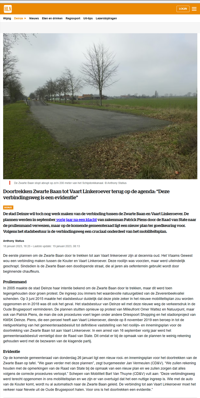 18/01/2023 - Stad Deinze zet doortrekken Zwarte Baan tot Vaart Linkeroever terug op de agenda.January 18, 2023